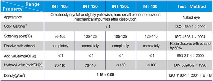 almost coating/printing raw materials and soluble in almost organic solvents, while INT Ketone Resin distinguishes itself by its decent solubility in alcohols solvent systems such as carbinol and ethanol, resulting in a high formula cost performance. There are INT 105, INT 120, INT 120L and INT 130 for this serie with unique character for each one. Still, INT Ketone Resin boasts of high stable quality resulted from mature technology and strict QC process.