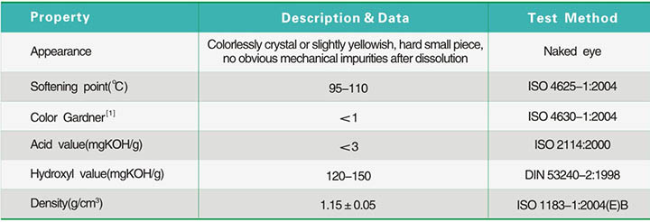 ·possessing properties of general ketonealdehyde resins, such as improving coating/oil ink film's adhesiveness and gloss, but it has better alcohol solubility, and faster solvent releasing speed.