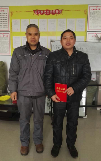 圖三:生產(chǎn)部經(jīng)理張建華與優(yōu)秀員工張治河的合影。